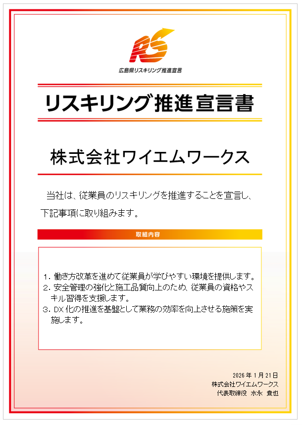弊社は、従業員のリスキリングを推進することを宣言いたします。